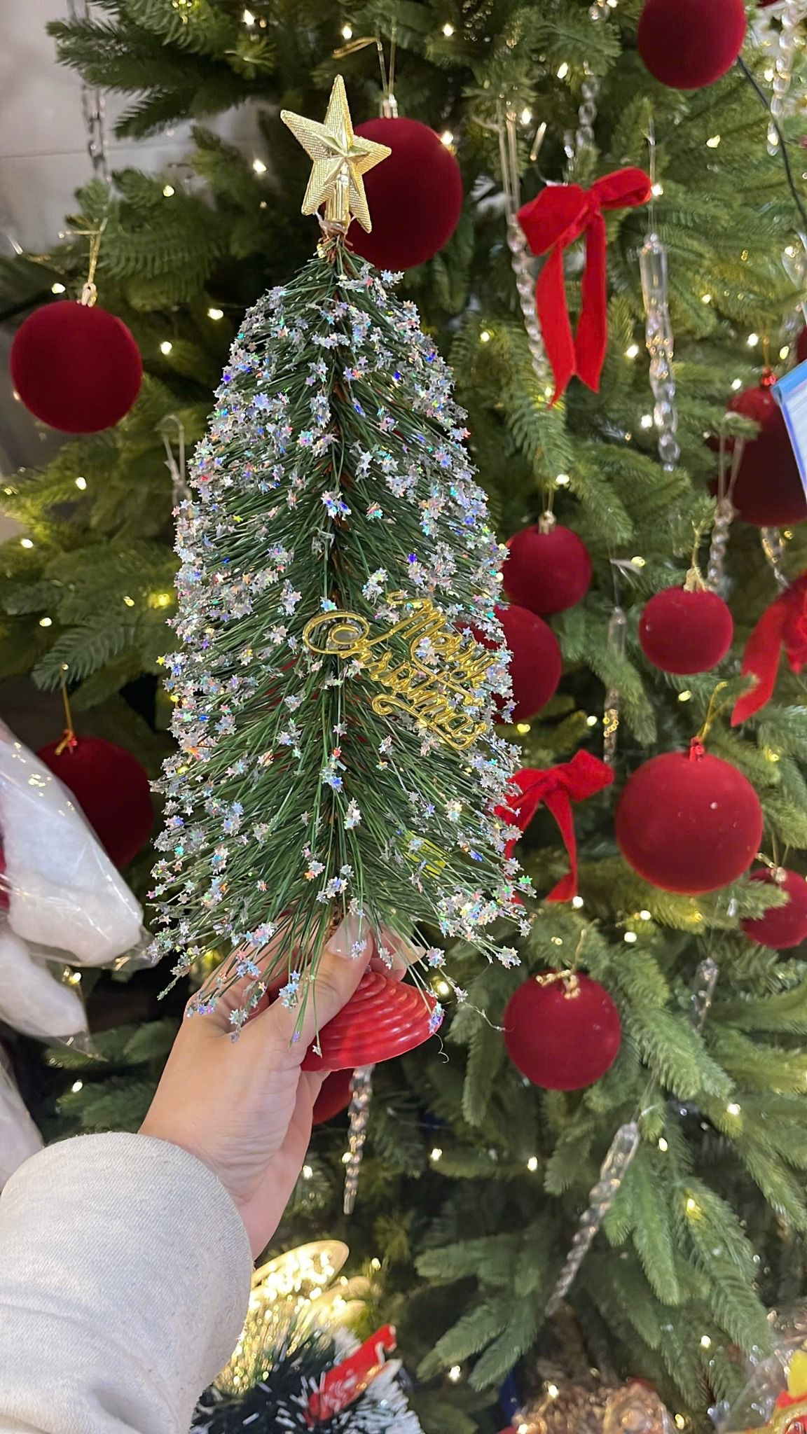 Cây Thông Mini Lá Cước Lăn Kim Tuyến 30cm