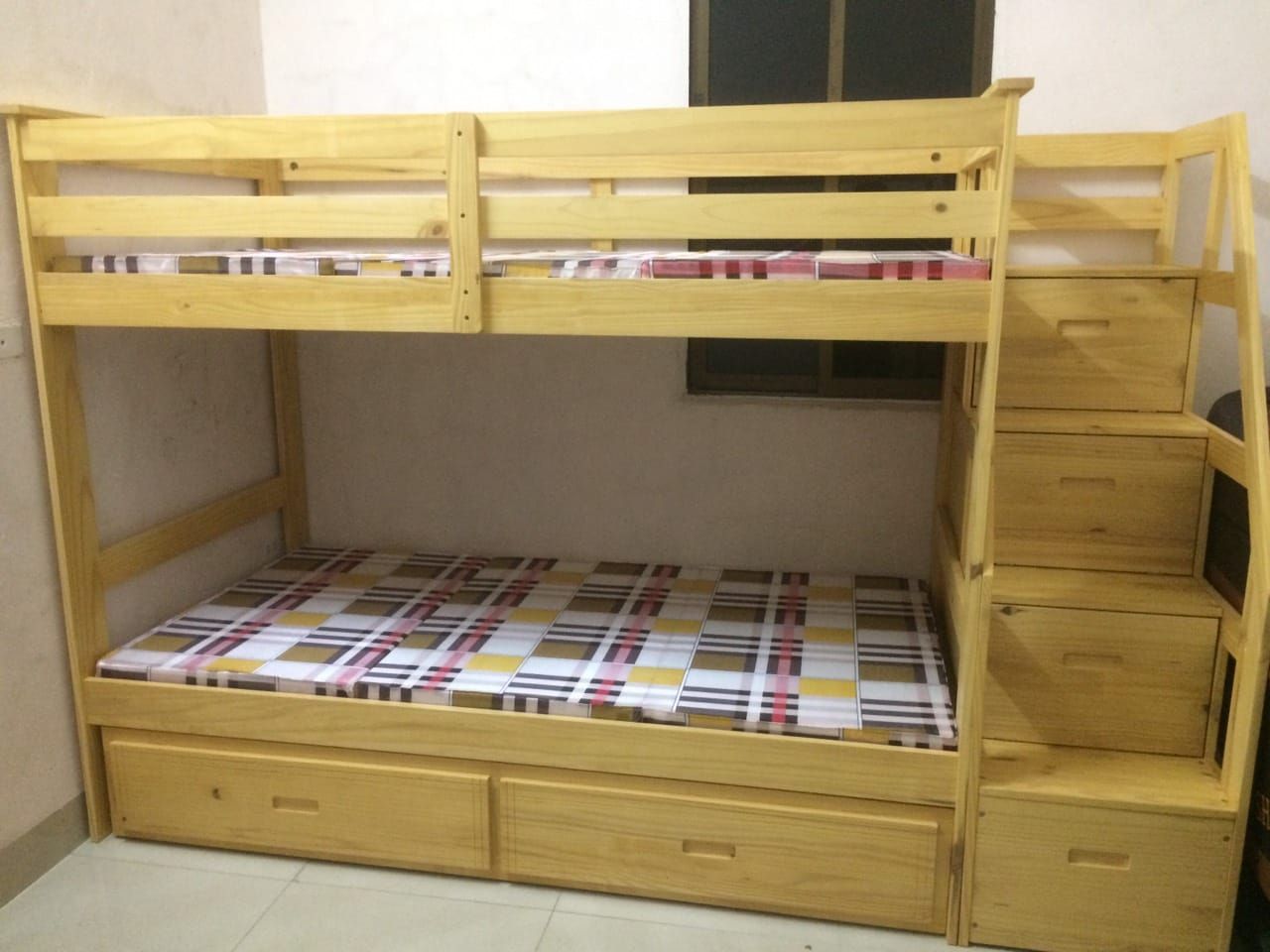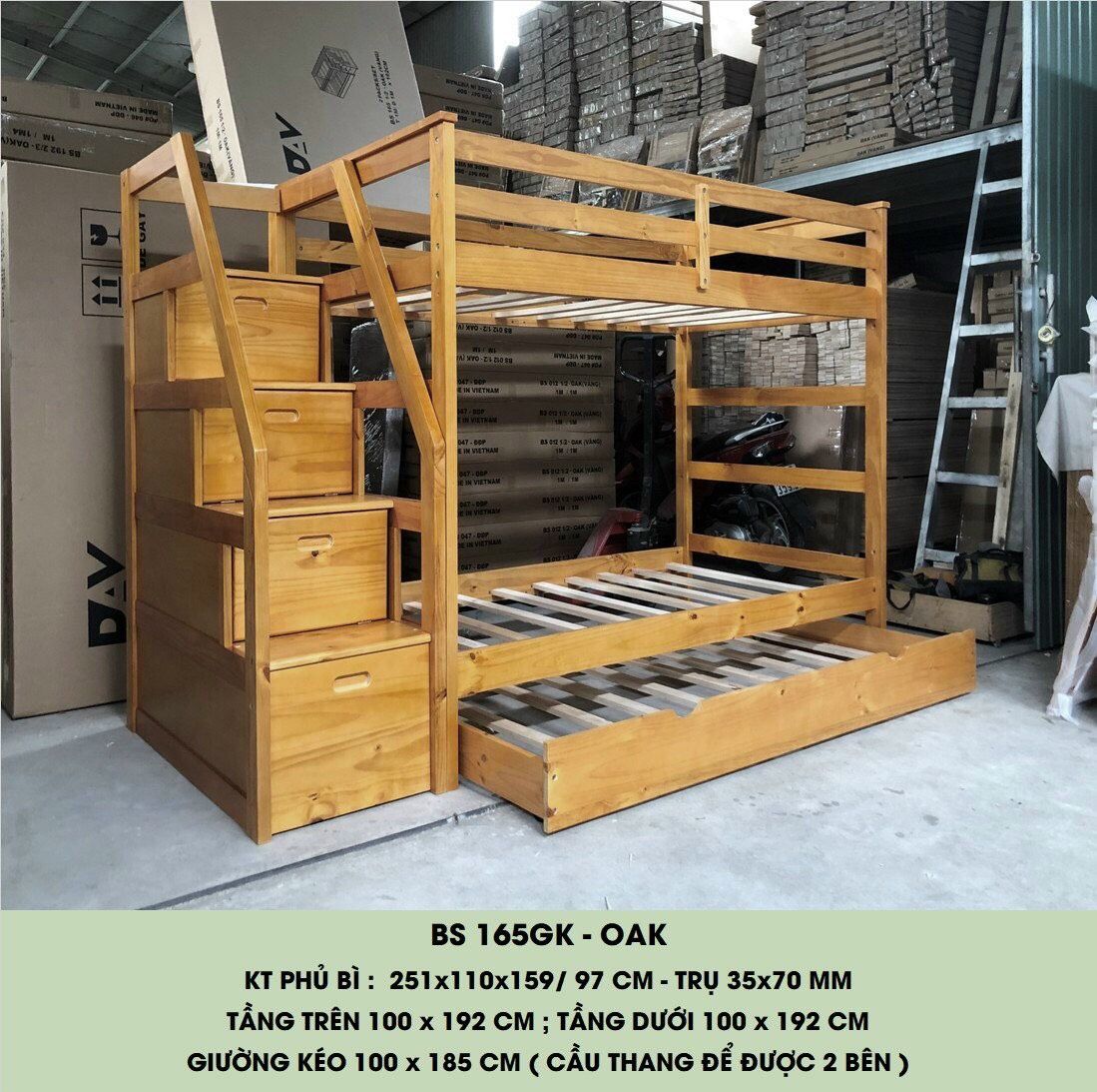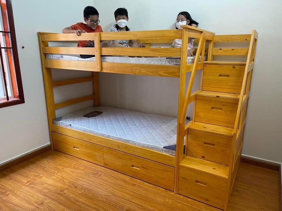 Số tầng: gồm 3 tầng giường và ngăn tủ cầu thang chứa đồ tiện lợi