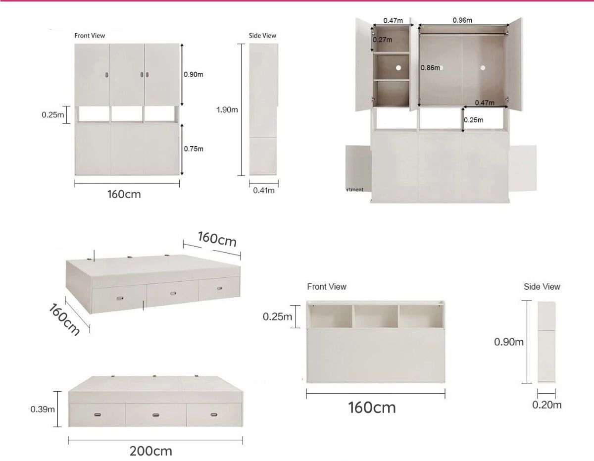 | Kích thước giường: | Dài 261cm x Rộng 160cm x Cao 190cm |