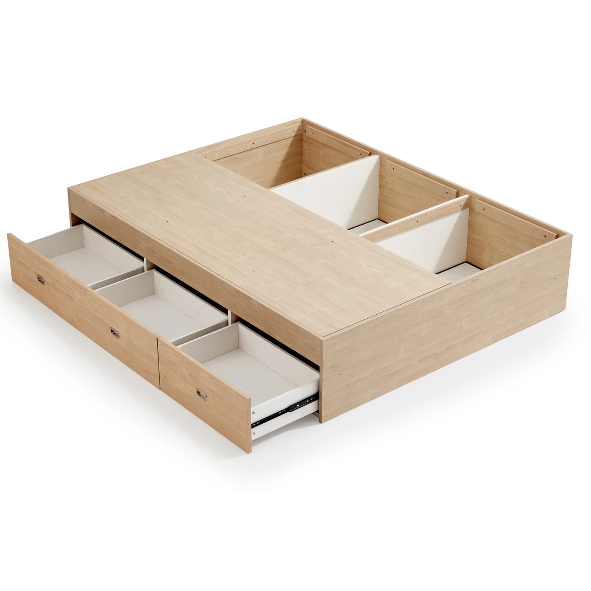 + Kết cấu giường ngủ gỗ MDF cao cấp và hiện đại theo module sản xuất hàng loạt bằng robot thông minh. Tất cả những phụ kiện bản lề, ray trượt giảm chấn nhập khẩu từ châu Âu, đảm bảo an toàn và chất lượng.