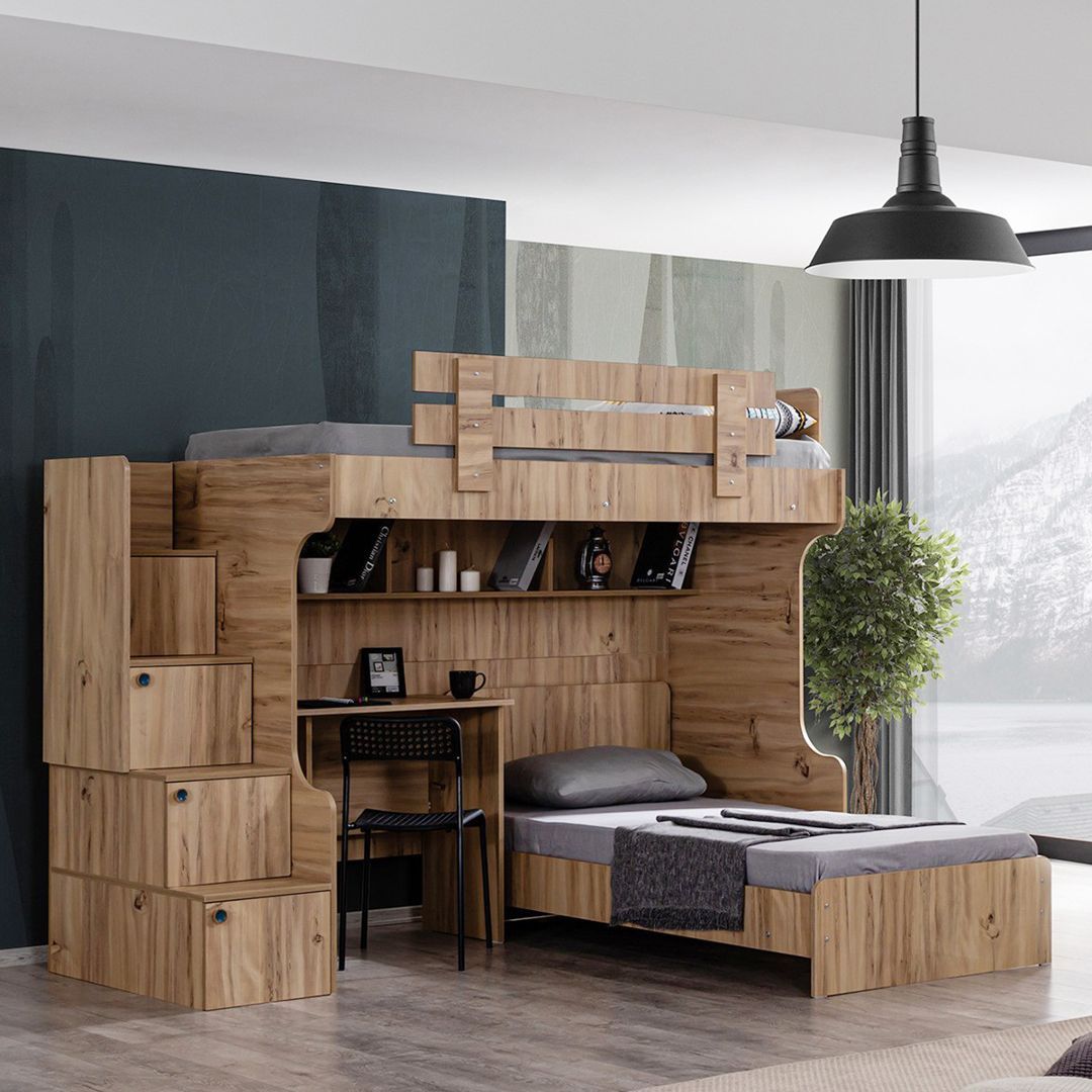 Giường ngủ em bé với phong cách đơn giản sẽ là điểm nhấn nổi bật cho phòng ngủ của bạn. Sản phẩm phù hợp với nhiều phong cách nội thất từ hiện đại cho tới cổ điển, vintage. Giường ngủ gỗ NOLULU được thiết kế cân đối và cực kỳ chắc chắn mang đến nhiều không gian lưu trữ ở đầu giường và gầm giường… Sử dụng vật liệu ván ép công nghiệp MDF chống ẩm phủ Melamine cao cấp giúp giường ngủ NOLULU có độ bền cao, chống trầy và chống ẩm rất tốt. NOLULU có hàng chục mẫu giường ngủ với thiết kế mới lạ, độc đáo chắc chắn sẽ mang đến sự ấm áp cho phòng ngủ của bạn.