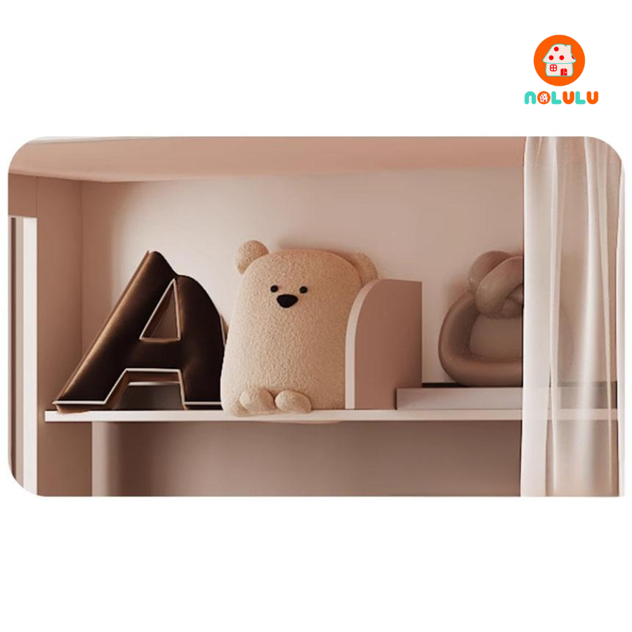 Giường tầng trẻ em phong cách dễ thương Nolulu - GT019 được thiết kế đa năng, tích hợp kệ sách ngay bên trên, giúp tối ưu không gian sử dụng. Thành giường tầng trên chắc chắn, phù hợp với nệm dày từ 10 – 15 cm, đảm bảo an toàn khi sử dụng. Bậc cầu thang rộng, chắc chắn, giúp bé di chuyển dễ dàng và an toàn mỗi ngày.