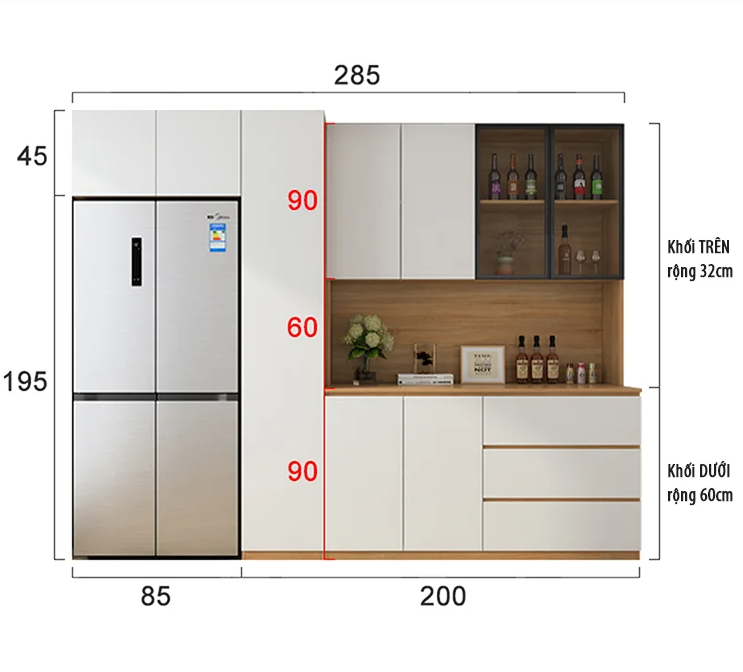 Tủ Bếp Đa Năng Để Rượu, Dụng Cụ Pha Chế Và Tủ Lạnh B22
