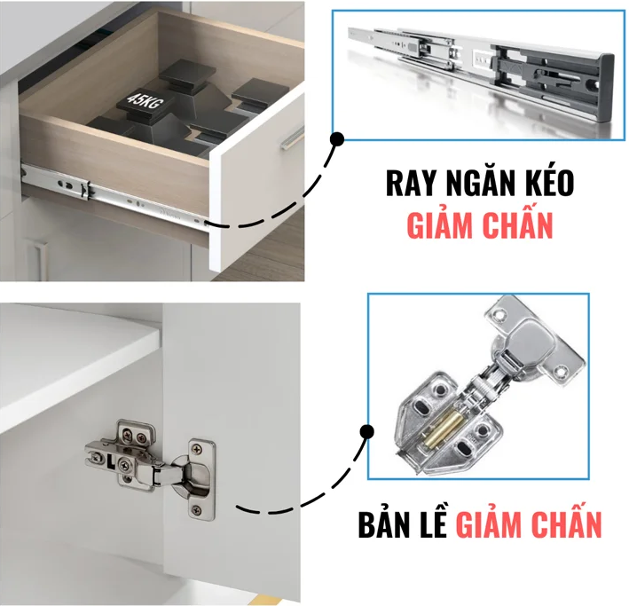 + Chân tủ cứng chắc, chịu lực tốt, chịu được va đập nên không bị biến dạng, co giãn trong quá trình sử dụng. Có khả năng cân bằng tốt, giúp tủ đứng vững trên sàn mặt, không bị rung, xóc chênh khi sử dụng.