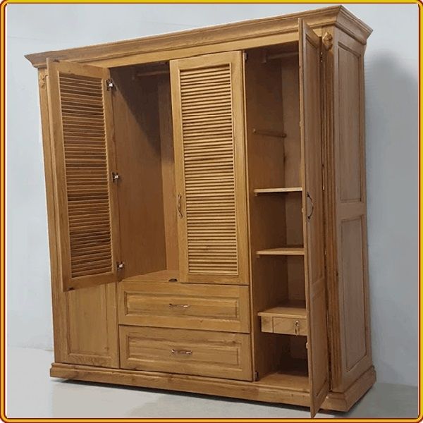 Tủ Quần Áo Gỗ Sồi Mỹ 4 Cánh Lá Sách 2 Hộc (1m8)