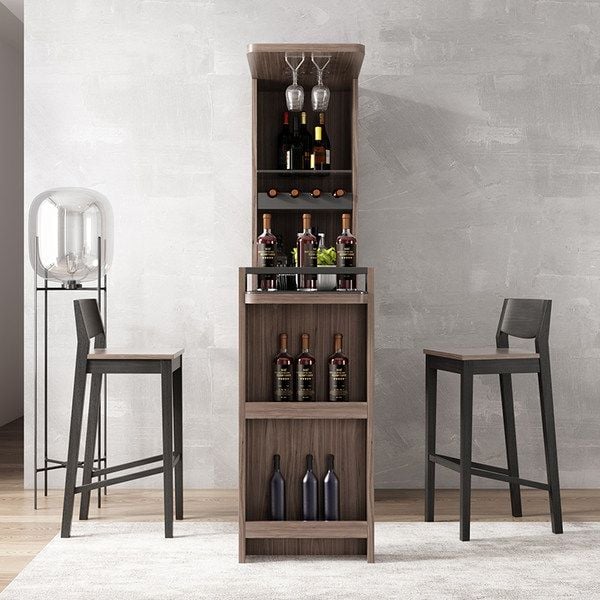 - Chất liệu: Tủ rượu được làm từ gỗ MDF cốt xanh phủ melamine. Bản lề giảm chấn giúp tăng cường độ bền, tính thẩm mỹ của kệ gỗ trang trí cũng như khả năng vận hành trơn tru của những cánh kệ trang trí.